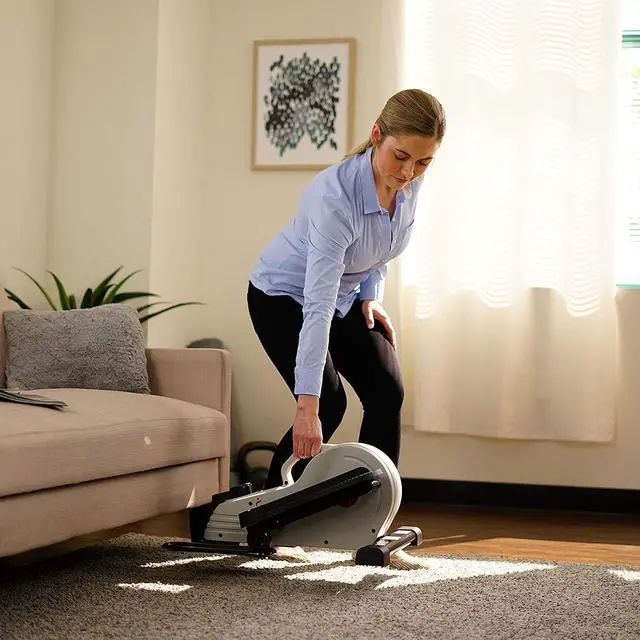 Versatile Compact Design Engineered with an innovative pedal motion trajectory, this slim elliptical trainer tucks easily under most desks, ensuring a comfortable fit and smooth movement without the risk of knee contact. Its versatile build allows you to integrate exercise effortlessly into your daily life, whether at home or in the office.