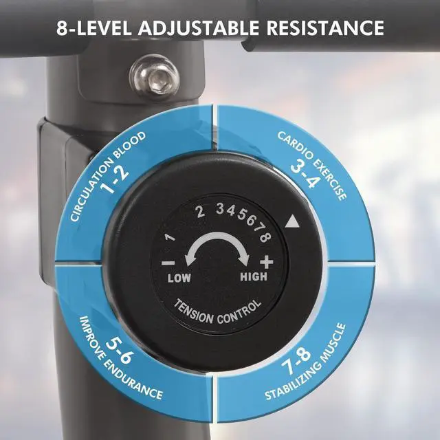 Adjustable Resistance Levels: Customize your workout with 8 levels of magnetic resistance, a recumbent exercise bike suitable for users of all fitness levels. Easily adjust the intensity to meet your training goals, ideal for gentle physical therapy and relaxing cardio exercise by recumbent exercise bike