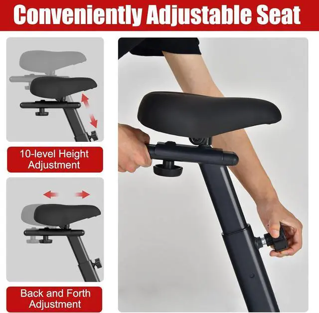 4-Way Adjustable Seat: The seat of this fan exercise bike can be adjusted to 10 different levels. Moreover, you can also adjust the seat back and forth from 17" to 21" to find a more comfortable position. Furthermore, the soft padded seat is covered with waterproof PVC leather, ensuring durability and easy maintenance.