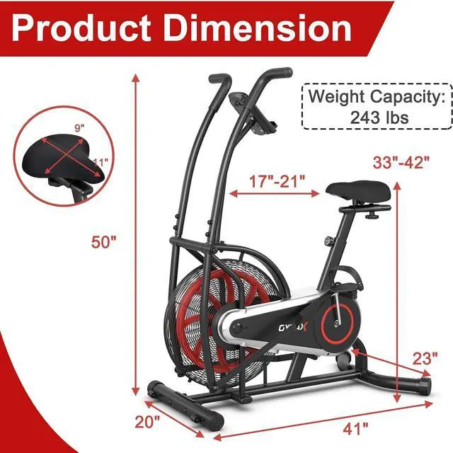 Endless Resistance: Featuring an 8-blade performance fan, the GYMAX air bike offers limitless resistance. And you will feel cool when exercise. Additionally, the double-stage belt and chain drive mechanism ensure a smoother ride.