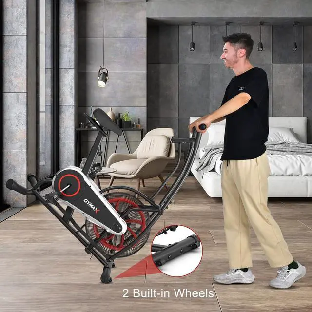 Compact Size & Built-in Wheels: This stationary fan bike has a small footprint, perfect for small spaces. Furthermore, the 2 built-in wheels allow for hassle-free transportation of this air bike.