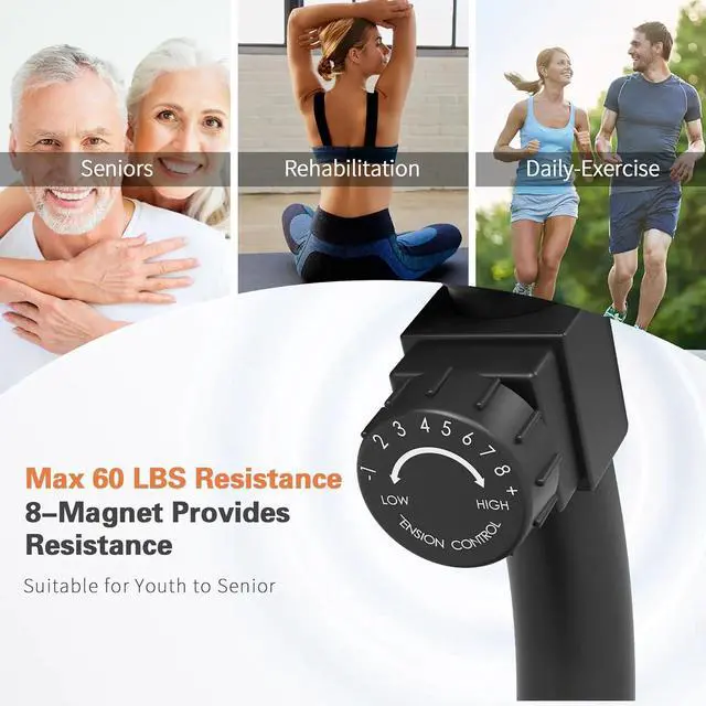 • [8-Level Magnetic Resistance] Customize Your Workout The Goimu Recumbent Bike features 8 levels of magnetic resistance, allowing you to tailor your workout intensity. Use levels 1-3 for light warm-ups, levels 4-6 for moderate cardio, and levels 7-8 for high-intensity fat burning. The safety lock knob ensures secure adjustments, making it easy to switch between resistance levels for personalized fitness programs.