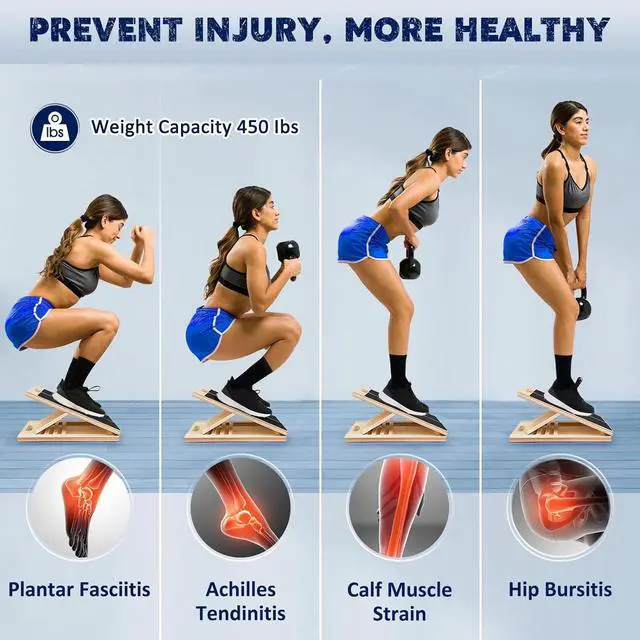 Adjustable to 4 positions: 30°, 35°, 40°, 45° Slant board for squats for portability, suitable for stretching and weight-bearing exercise at home, office, gym, and clinic.