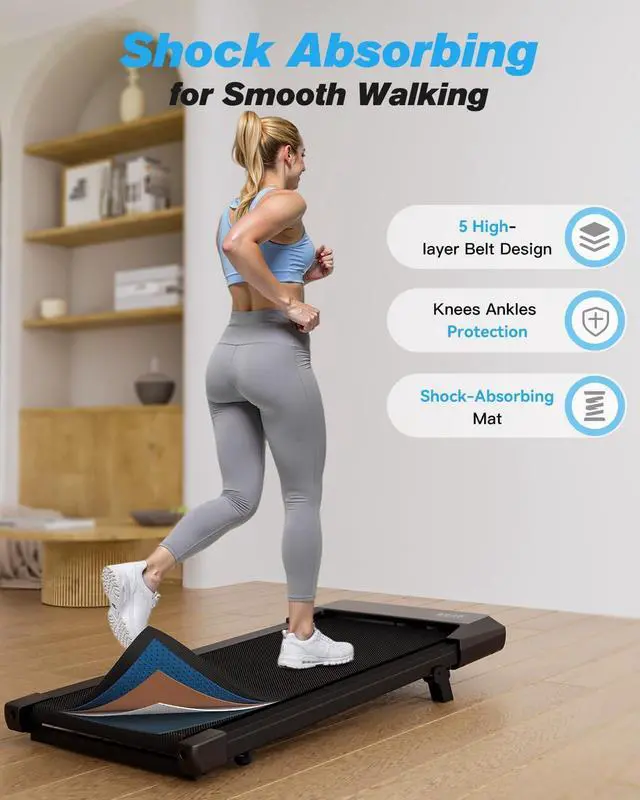 Non-Slip & Stable Running Belt: This mini treadmills for home equipped with 5-layer multifunctional running belt. Portable treadmills for home not only provides you with a comfortable and safe exercise experience, but also effectively reduces joint impact and protects your knees
