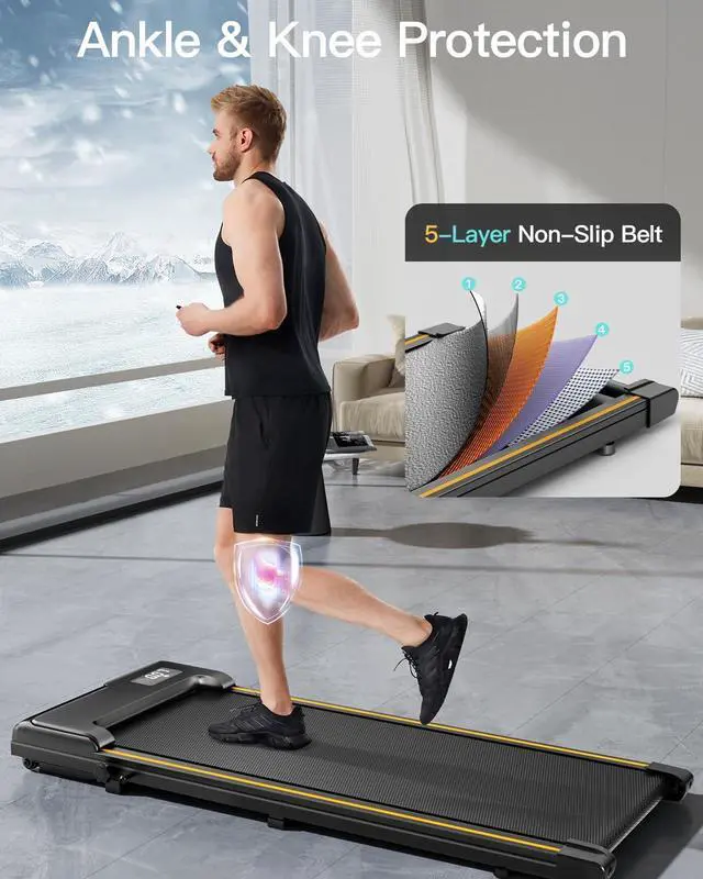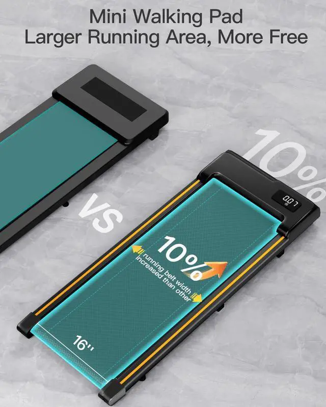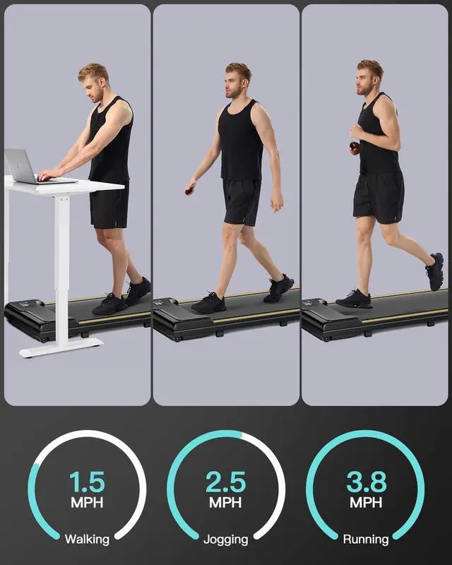 Compact & Portable Design ~ With dimensions of 45.1 x 19.7 x 4.7 and a weight of only 38.5 lbs, the mini treadmill is designed to be compact and portable. Additionally, the inclusion of wheels makes it easy to move and store
