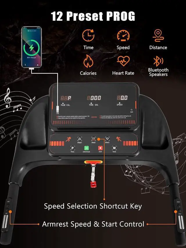 3-Screen Display & Foldable Design: This treadmill with handles features a triple display that shows time, speed, distance, and calories burned in real time and allows you to improve and adjust your workout program at any time with buttons on the handrail and panel. This foldable treadmill has a built-in water cup holder and tablet/cell phone holder, making it easy for users to place their belongings while working out