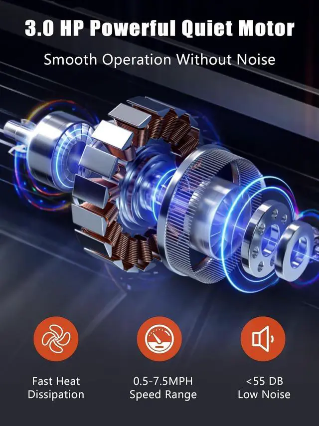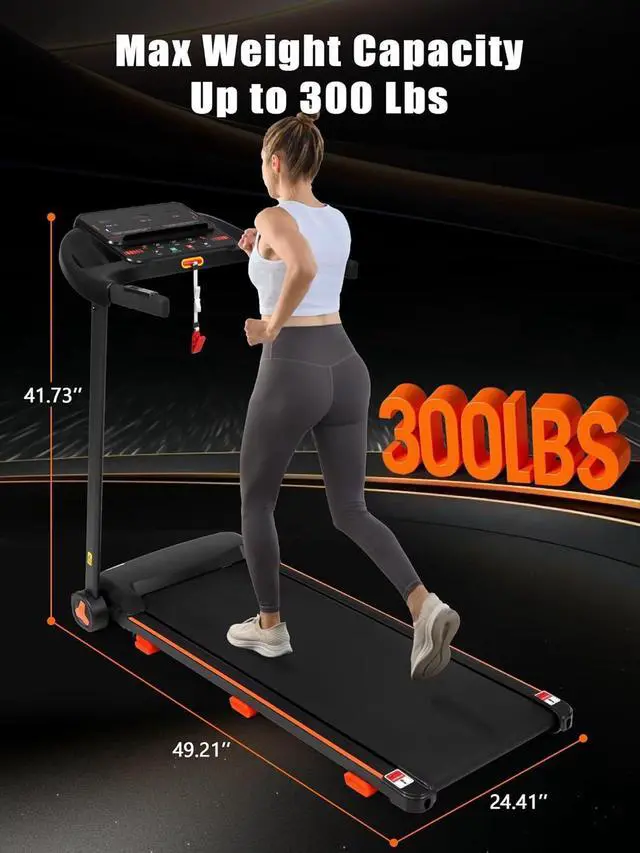 Powerful And Quiet Motor: The Walking pad Treadmill has a quiet motor with a maximum power of 3.0HP and can withstand users up to 300 lbs. This portable treadmill has a speed range of 0.5 - 7.5MPH while keeping the noise below 45 decibels for a quiet and smooth operation for indoor workouts