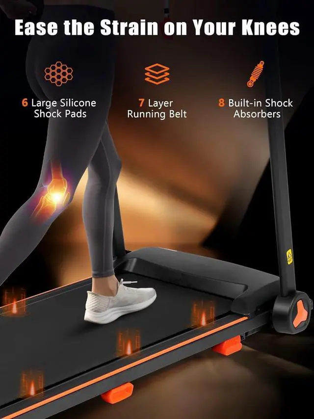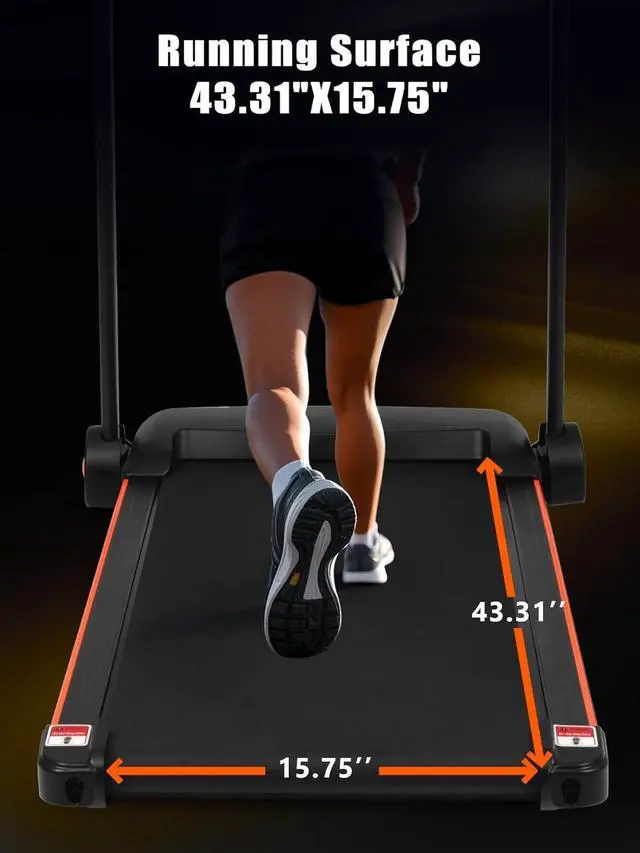 Spacious Running Belt: 43.31 " x 15.75 " Running belt is equipped with 7 layers of non-slip surface, cushioning rubber pads and silicone shock absorbers, the running belt will not shift to ensure a smooth and comfortable run, absorbs shock generated during running, reduces impact on joints and muscles, extends the duration of the workout, and improves workout results