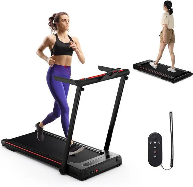 Foldable Design & Easy Storage: This treadmill can be folded into a compact size for easy storage and space-saving. With 2 built-in transportation wheels on bottom, you can easily move it from room to room. When done with your workout, you can fold and store the treadmill in a corner or under the bed/sofa.