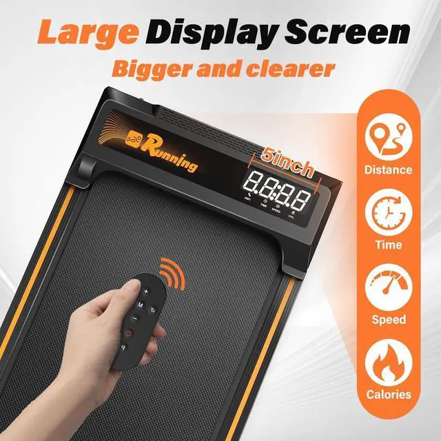 User-Friendly LED Display for Real-Time Fitness TrackingStay on top of your fitness goals with the built-in LED display, which tracks essential metrics like speed, distance, time, and calories burned. The intuitive interface makes it easy to monitor your progress, whether you' re walking while working or running for cardio. Plus, the treadmill' s low-profile design allows it to fit under most desks, making it a great choice for an office treadmill.
