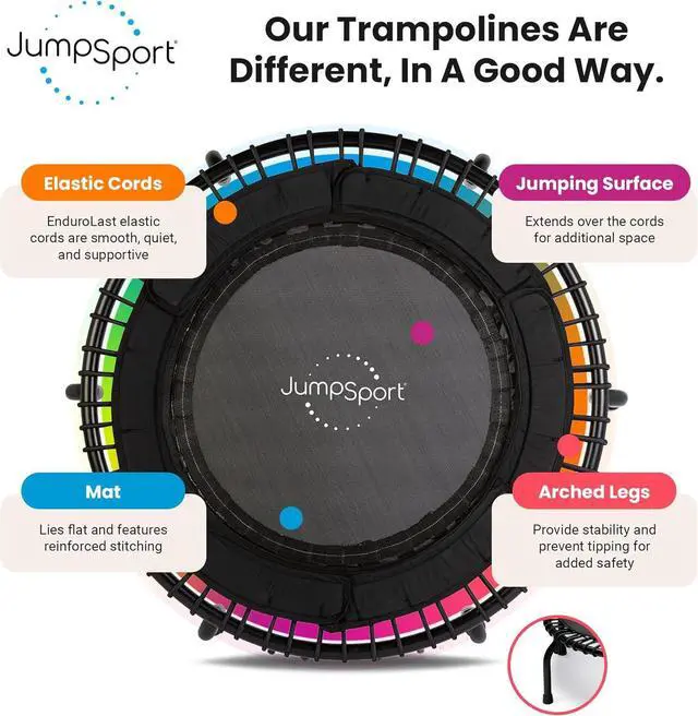 • INCLUDES 60 DAYS OF CLASSES. Purchase includes an extended trial to JumpSport Fitness TV where you can stream 100's of trampoline workouts.