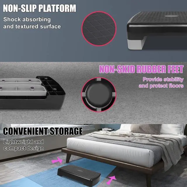 [Textured surface]: Non-slip, and shock absorbing, the surface is a slip-free, meaning you can have stability with every single set of steps
