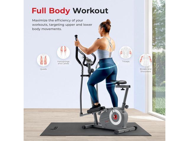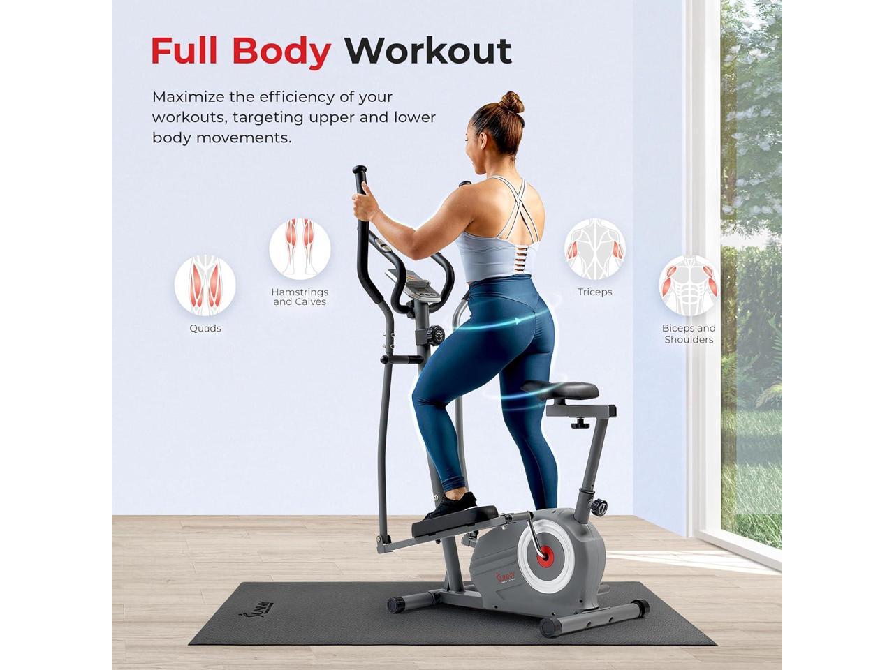 - Connected Fitness: Connect this 2-in-1 Cross Trainer to SunnyFit App and sync with your fitness goals, allowing you to track, adjust and personalize your workouts on the go. Explore 1000+ workouts and 10,000+ workout routes from around the world