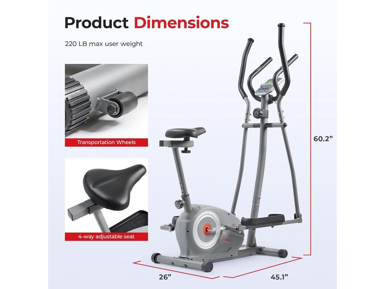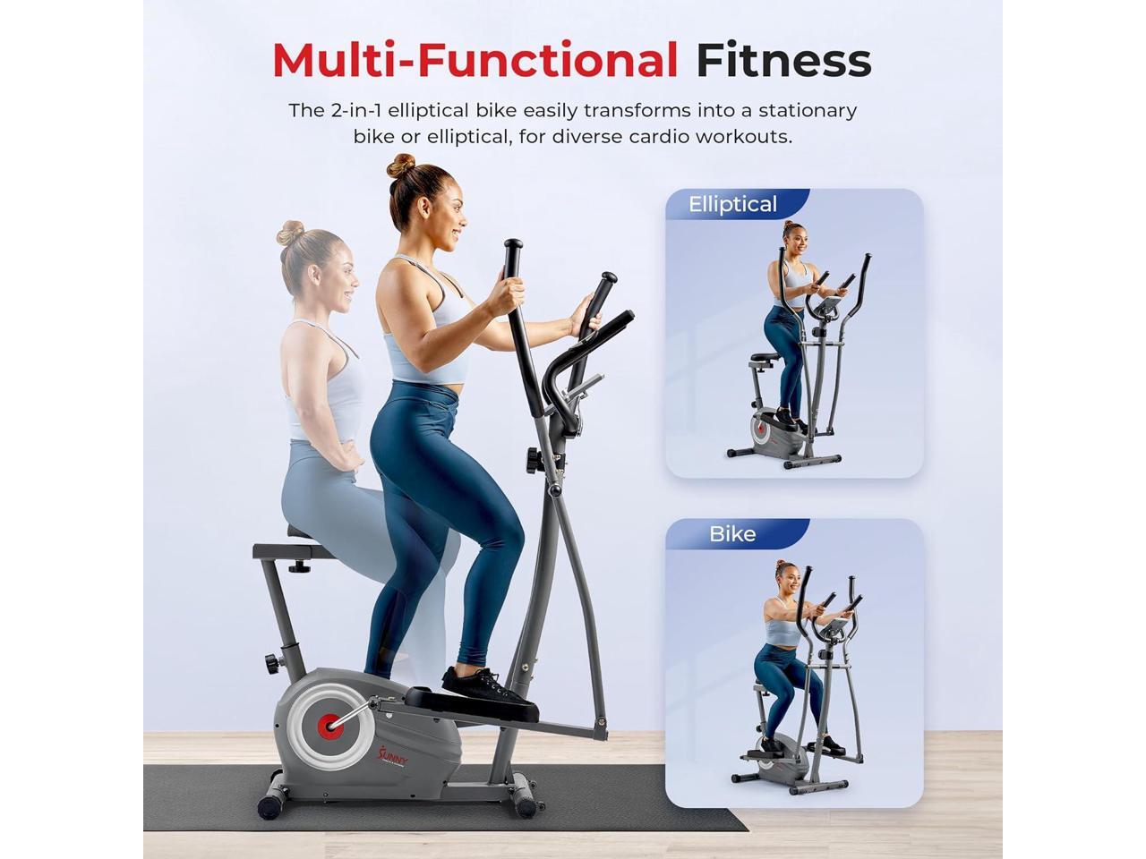 - Versatile 2-in-1 Trainer: This versatile 2-in-1 elliptical transforms into a stationary bike and elliptical, allowing you to switch between elliptical motion and cycling for diverse cardio workouts