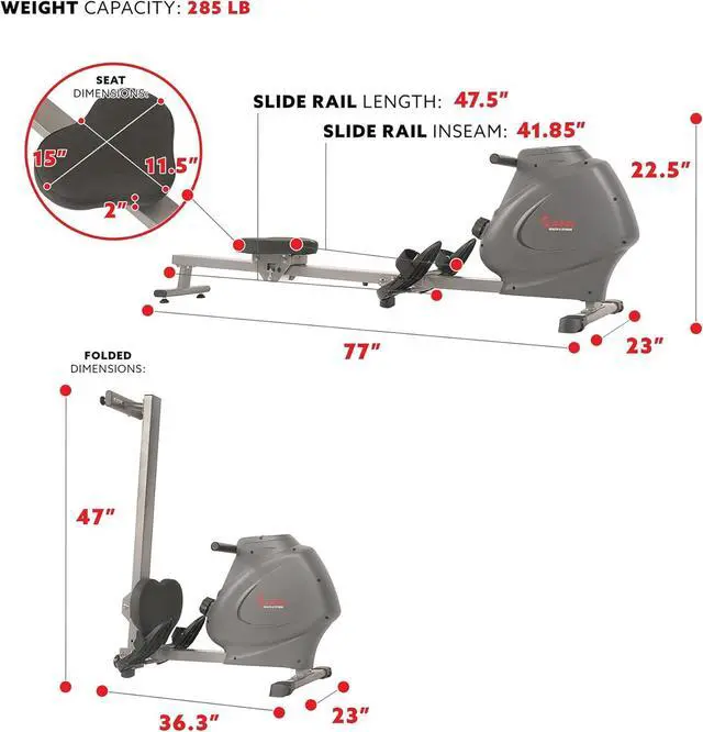 FOLDABLE ROWER: Convenient folding rower machine folds upright. Great for smaller in home gyms.