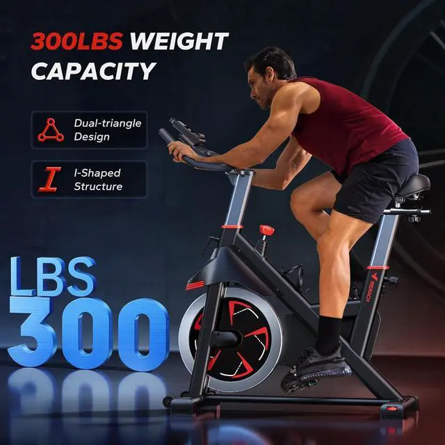 USERS: This exercise bike for home features a 2-way adjustable handlebar and 4-way adjustable seat. Its durable stainless steel dual-triangle frame ensures stability and supports up to 300 pounds, offering a secure ride for everyone from beginners to athletes.