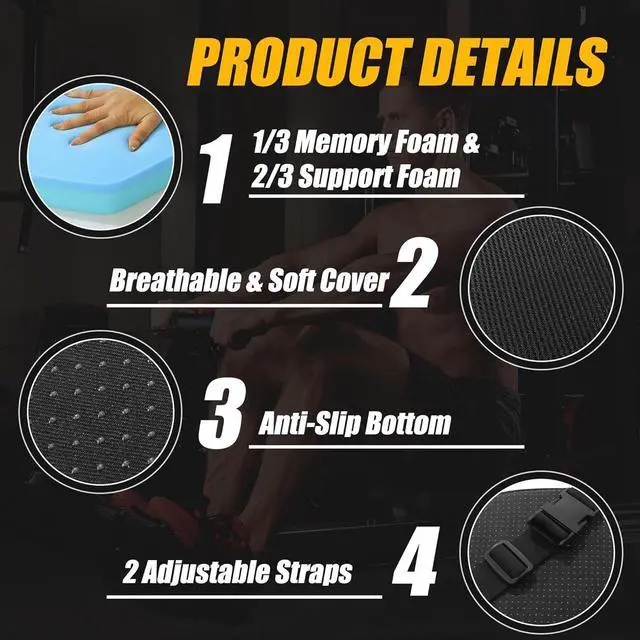 Non-Slip Design: This rower seat pad with high-friction rubber material and two elastic straps. The non-slip design holds the cushion steady, so you can exercise without worrying about slipping back.