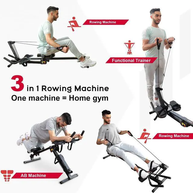 : Tousains 3 in 1 rowing machine offers a variety of exercise modes, including rowing, abdominal exercises, fitness and reverse rowing, and standing stretching. With these rowing machine activities, you can effectively burn fat, build a healthier physique and help you achieve your fitness goals even if you exercise at home.