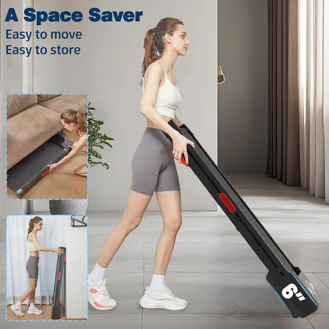 Bigger & Brighter RGB LED Screen & Mileage Accumulation Tracking Auto InclineOur under desk treadmill with auto incline is designed with a bigger and brighter RGB LED screen (Six captivating colors: White, Green, Blue, Purple etc. ) for each one of you. You can read speed, calories, time, incline level, distance you walk or run. And you can shut the lights down with one button press. This sturdy walking pad treadmill helps you add up and track the miles you run, better supporting your fitness.