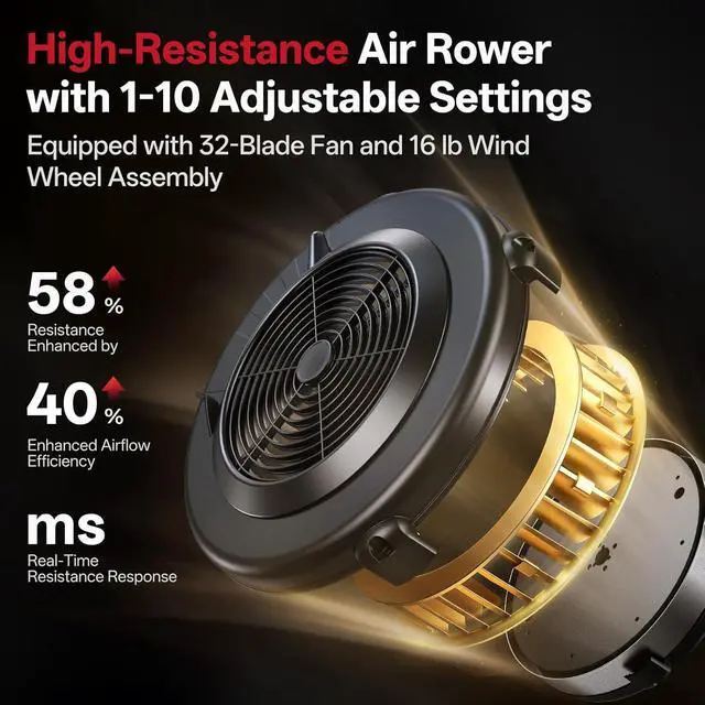 Integrated Display with adjustable Device Holder- The medical-grade accurate smart display on this air rower rowing machine fix firmly different devices such as mobile phones or tablets. The support rod is adjustable, allowing you to easily read at any angle. The backlight function can track all sports data more clearly and effectively, such as time, time/500m, strokes, total strokes, distance, calories, RPM, pulse, etc.