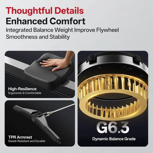 Premium Construction- This rowing exercise machine built with 2.5 mm premium thick pipe which ensures safety and stability. 49.5 rail length fits almost all users. The four ultra-quiet triple rollers evenly distribute the load weight, more sturdy.