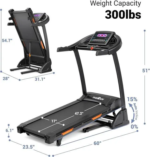 Weight: THERUN treadmills for home features strong alloy steel frame and components to bear about 300 lbs, ready for for marathoners, sprinters, long distances runner and daily race trainer, 3.5 HP motors run the belt and power the incline easily, the noise may be ignored when running indoors