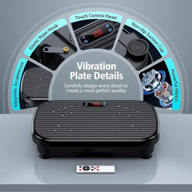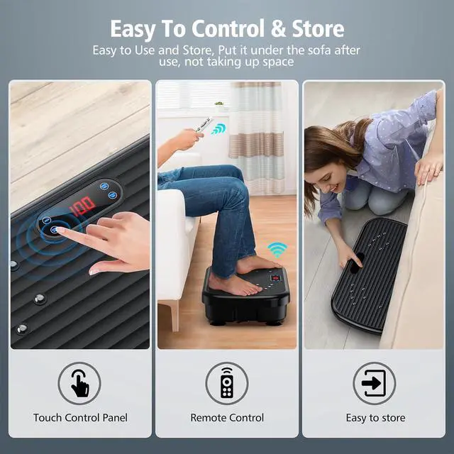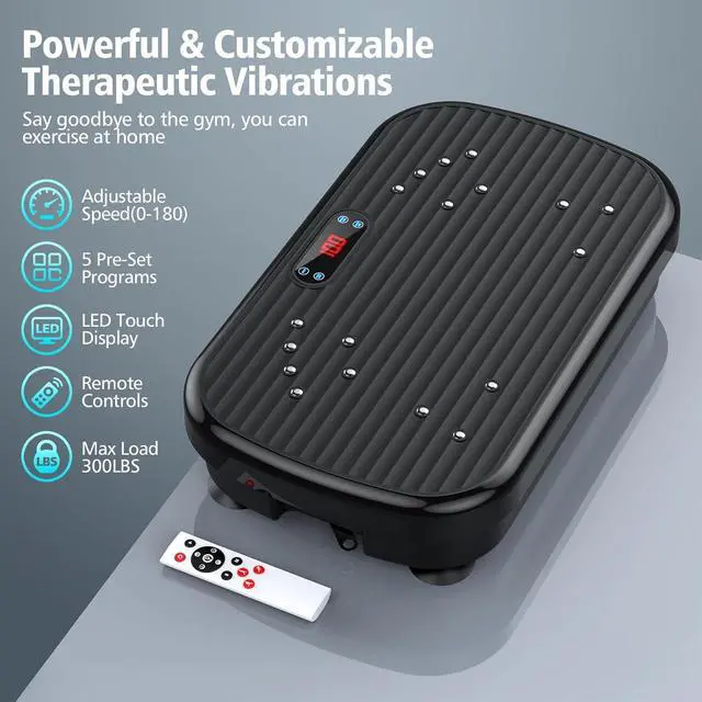Easy to Use and Store: Operate the vibration plate in two ways: with the included remote control or via the LED touch screen, the display allows you to see the time and speed for a clear view of your workout; Anti-slip coated design, impact-resistant ABS housing ensures the longevity and protection of the motor. Compact size, can be used anywhere, space saving, easy to carry and store