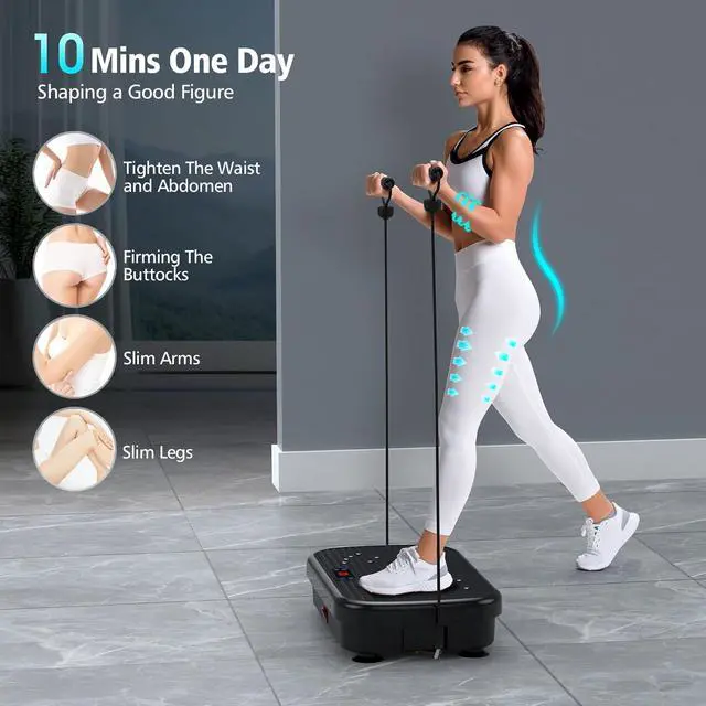 Build the Perfect Body: Hop on your vibration plate machine and instantly build your ideal body! The vibration machine generates whole body vibrations for muscle contraction and activation to burn calories and fat, which can help your body process fat many times faster than running