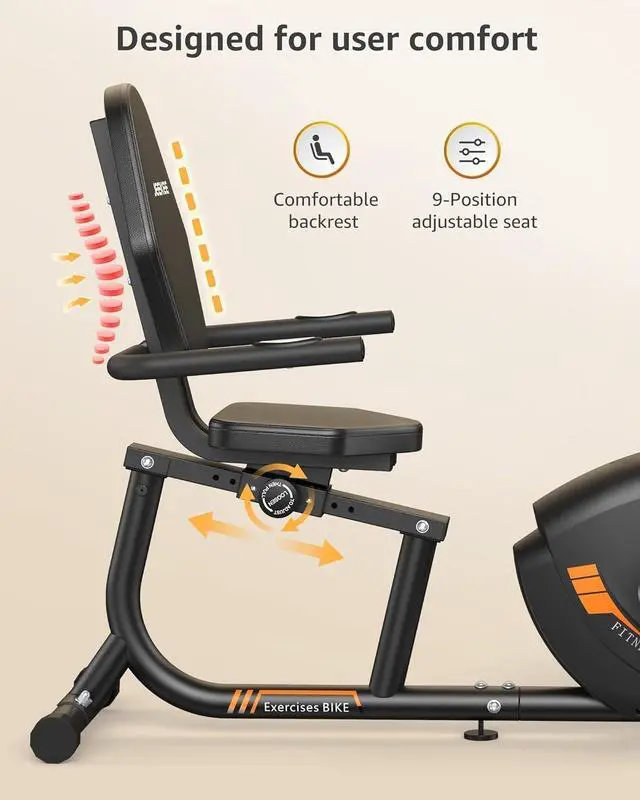 Smooth and Quiet Recumbent Bike: The stationary recumbent bike uses strong neodymium magnets. The resistance is more uniform and the service life is longer. In addition, the craftsmanship of double belt system makes the experience smoother and quieter