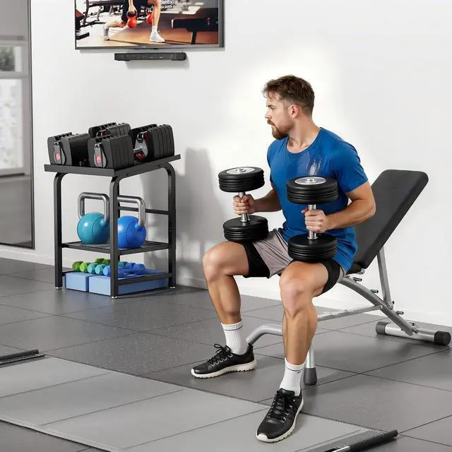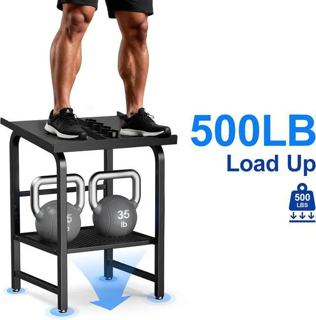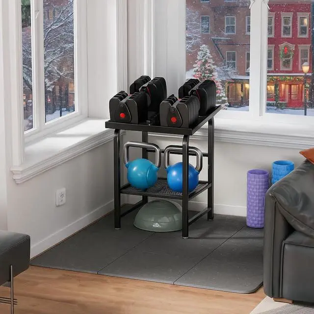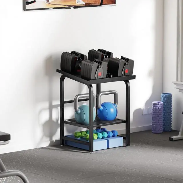Multi-purpose & Gift-ready Besides dumbbells, the lower shelf stores kettlebells. A practical gift for fitness enthusiasts, family, and friends.