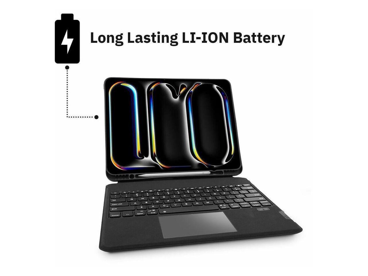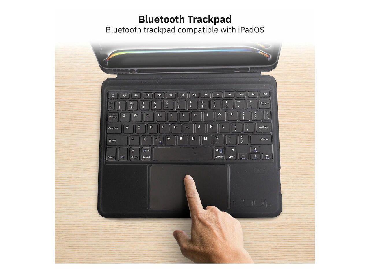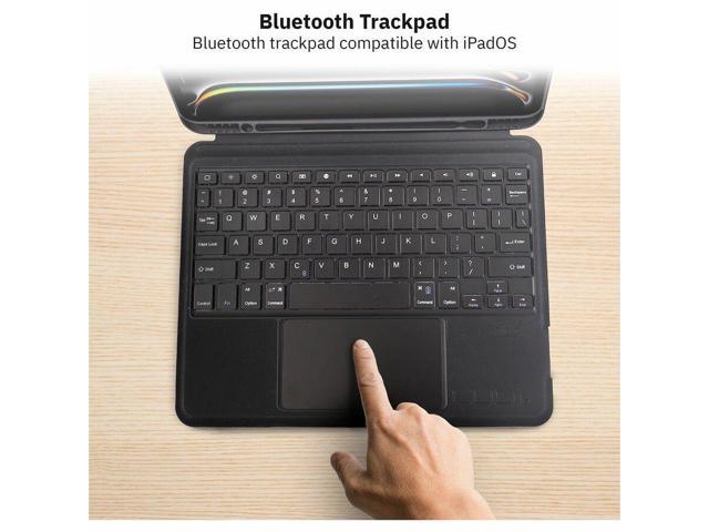 - : Turn your iPad into a laptop-integrated Bluetooth keyboard with trackpad, Apple Pencil charging and storage, smart cover functionality, responsive island-style keys, and secure folio protection