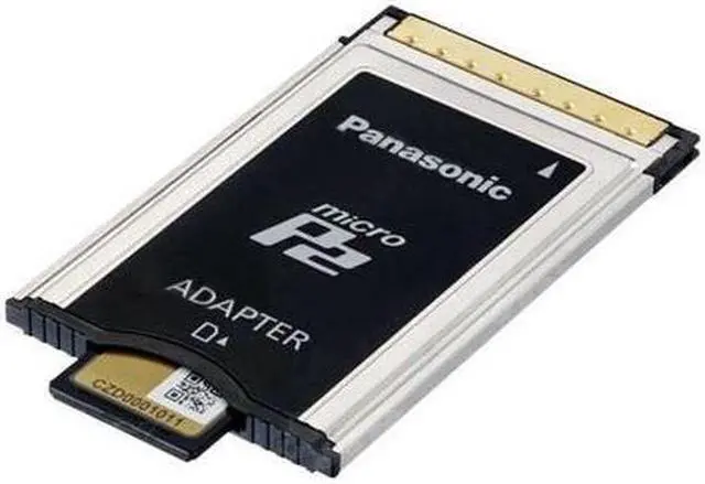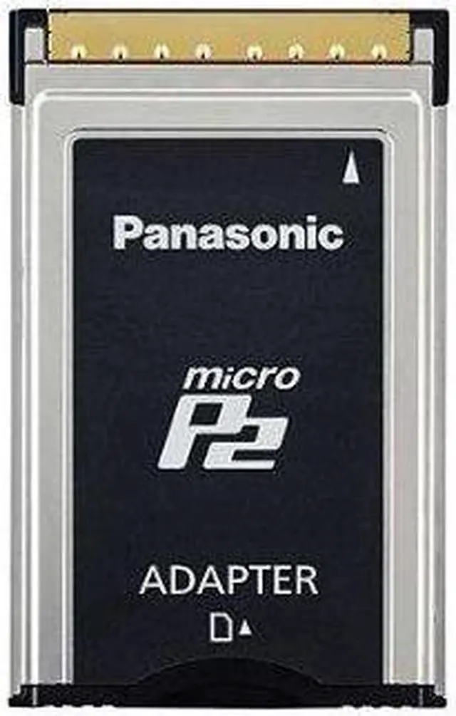The Panasonic AJ-P2AD1G microP2 Memory Card Adapter enables you to use microP2 cards in the full-size P2 card slots in camcorders. Since these are the same size as SD memory cards, you can also use many 4-128GB Class 10 SDHC/SDXC cards in this adapter, with interval rec, one-shot rec, loop rec and one-clip rec disabled (some cards may not be usable).