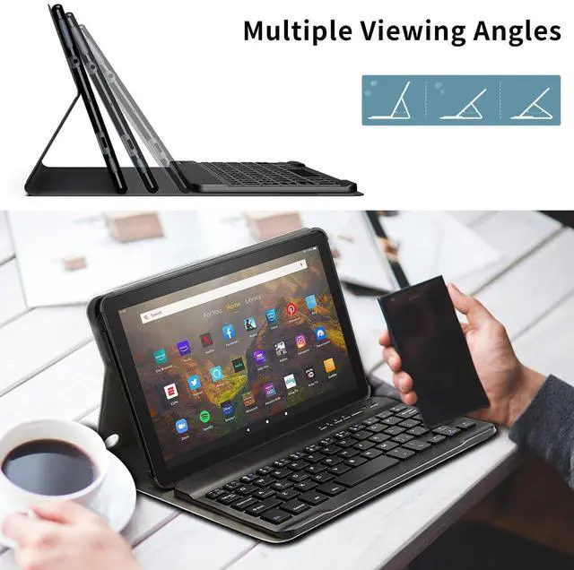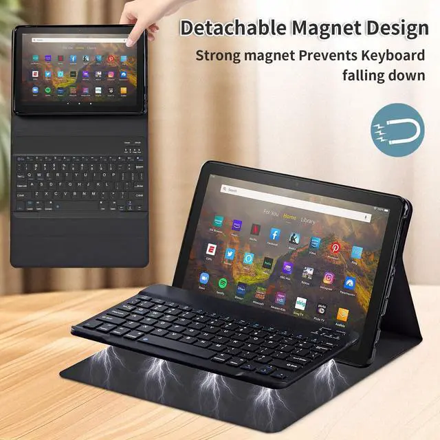 Introducing the ultimate accessory for your Amazon Kindle Fire HD 10/Fire HD 10 Plus Tablet 10.1 (13th/11th Generation,2023/2021 Release) - the Fire HD 10 Tablet Case with Keyboard! This versatile and durable case not only protects your tablet from scratches, drops and other damage, but also features a detachable Bluetooth keyboard for easy typing and increased productivity. Designed for both men and women, this keyboard case is the perfect accessory for anyone who wants to get the most out of their Fire tablet. With its sleek and modern design, it is sure to turn heads wherever you go. This Fire Tablet 10 Case with Keyboard is compatible with a variety of accessories, including a mouse and other keyboards, making it the ultimate all-in-one accessory for your tablet. Whether you're using it for work, school, or play, this keyboard case will make your life easier and more enjoyable. So why wait? Upgrade your tablet experience today with the Fire HD 10 Tablet Keyboard Case!