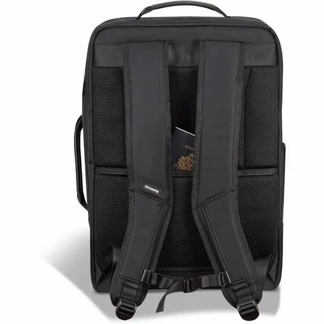 The Carry-on Backpack from The Onyx Collection is for those seeking a versatile carry-on alternative that is rugged enough for hiking and camping adventures. Crafted from durable Water-resistant nylon material, this backpack protects your belongings from the elements, making it ideal for various travel scenarios. It features a built-in RFID pocket for securing your personal information, adjustable air-mesh shoulder straps, and a chest strap for optimal comfort and support during long journeys. The padded 17" laptop and tablet sleeve with compression strap closure ensures the safety of your valuable tech devices. Stay connected on-the-go with the USB-C charging port, and navigate through airports effortlessly by attaching the backpack to your suitcase with the trolley strap, complemented by a hidden zippered pocket for added security.