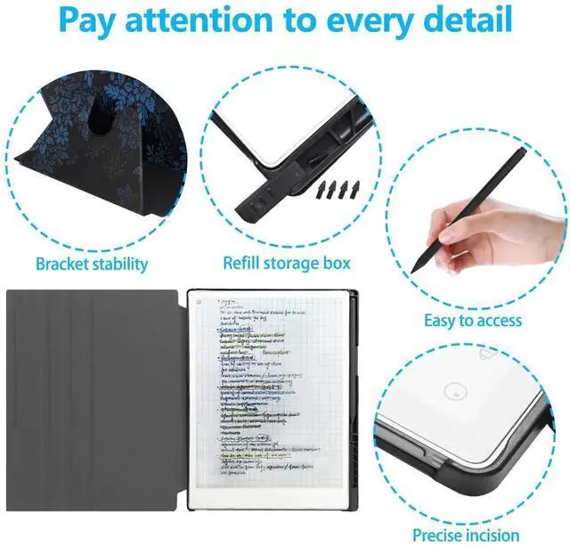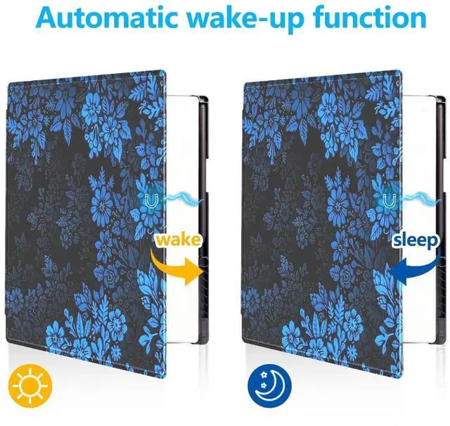 QIOFEARTH Rotating Case for 11.8" Remarkable Paper Pro Tablet (2024 Released) Lightweight and Hard Back Shell Protective Book Folio Cover, Auto Sleep/Wake, Pen Holder and Pen Tips Box (Blue Flowers)