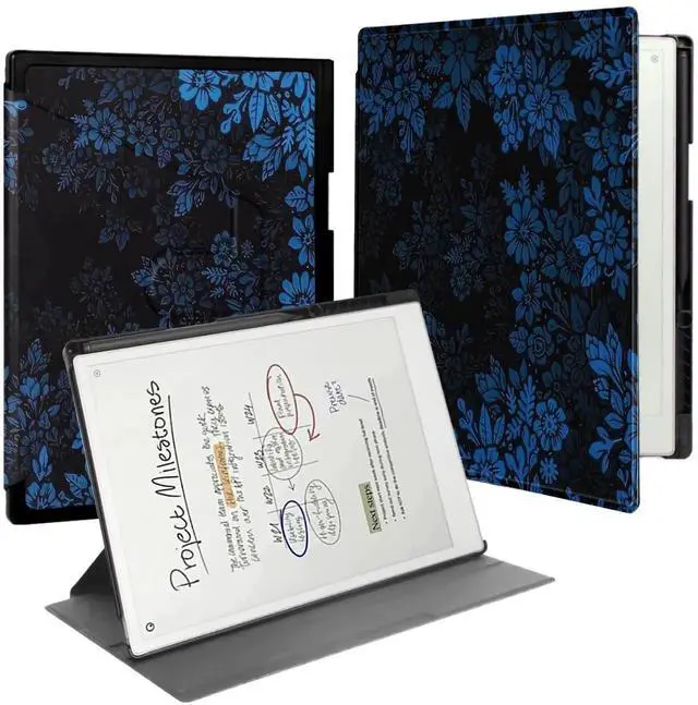 QIOFEARTH Rotating Case for 11.8" Remarkable Paper Pro Tablet (2024 Released) Lightweight and Hard Back Shell Protective Book Folio Cover, Auto Sleep/Wake, Pen Holder and Pen Tips Box (Blue Flowers)