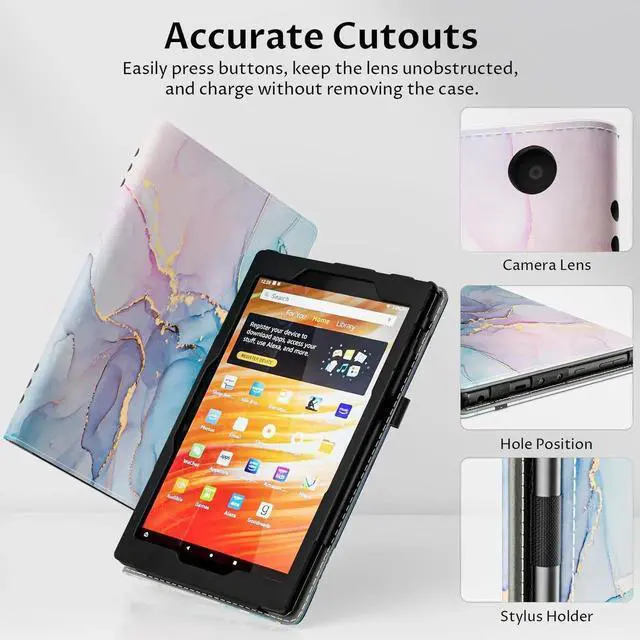 VORI Case for All-New Amazon Kindle Fire HD 10 Tablet (13th/11th Generation 2023/2021 Release) and Fire HD 10 Plus - Slim Folding Stand Folio Cover with Auto Wake/Sleep & Hand Strap, Dreamy Marble