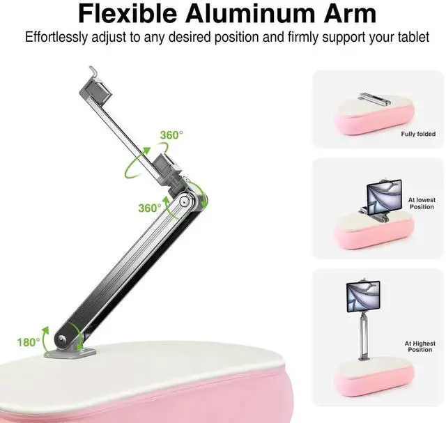 elitehood 18 inch Kindle Stand for Reading in Bed, Adjustable Tablet Pillow for Lap, Soft Kindle Pillow Stand for Bed Compatible with 6-13 inch Cell Phone, iPhone, iPad Pro Air Mini, Tablets, Pink