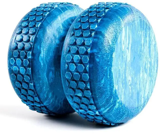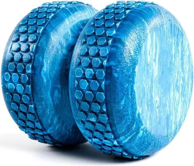Smaller and less cumbersome than a traditional foam roller, the Myo-Roller has a channeled, or H-shape, design to promote spinal alignment and target different pressure points during self-myofascial release. It features a unique and stylish blue marble design.