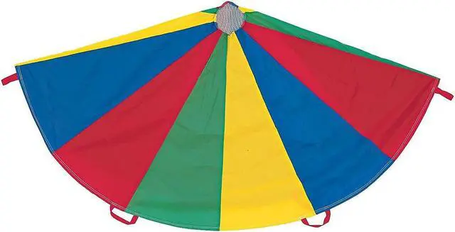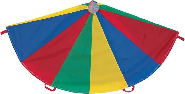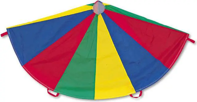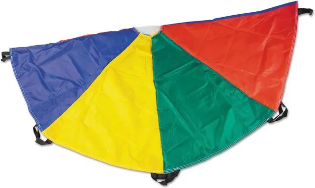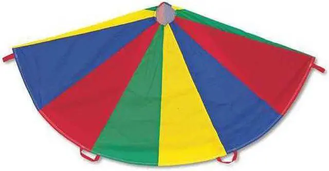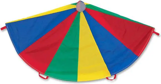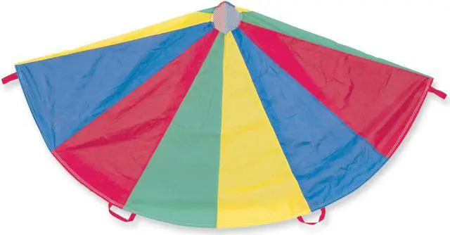Champion Sports 24 FT Parachute - Multi The Champion Sports Multi-Colored Parachutes provide stimulating fun for kids of all ages. Made of rip stop nylon material for extra durability, all the panels are double stitched for added strength. The handles are also double stitched so they will not tear or come loose, and the reinforced mesh center allows ample air flow and prevents balls from rolling through. The parachutes are available in several sizes to suit your needs.