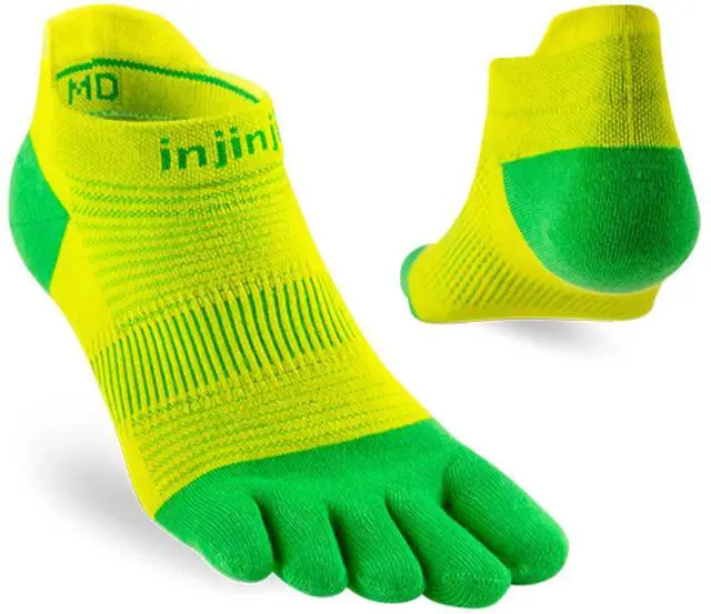 Designed for runners, our bestselling Run Lightweight No-Show performance toesock provides trusted comfort, support, and durability. Built to perform on all surfaces, the innovative five-toe design prevents blisters and promotes total foot utilization. Lightweight COOLMAX® EcoMade fibers keep feet dry, while added arch support provides stability. The No-Show height rests below the ankle and features a heel tab to protect against chafing and keep your running socks from sliding.