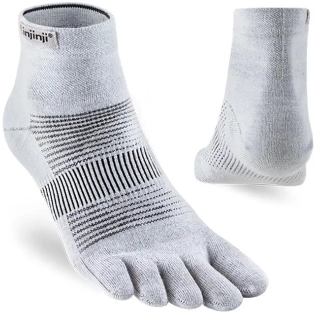 Injinji Unisex Run Lightweight MiniCrew Toe Socks, Gray, Medium
