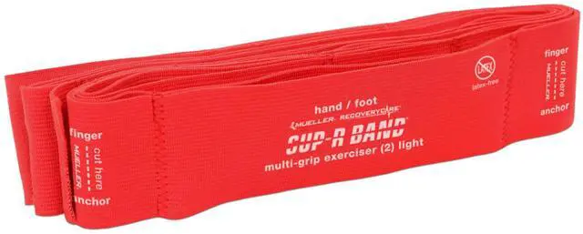 Take your training and rehab routines to the next level with the Mueller SUP-R BAND Multi-Grip Exerciser from Mueller Sports Medicine. Designed with multiple large and small loops, this advanced resistance tool allows for a near-unlimited range of exercisestargeting fingers, arms, legs, and full-body movements. Each band features 8 progressive resistance levels, color-coded to industry standards, and can be quickly adjusted by simply changing your grip or loop position. Made from a soft, latex-free, and powder-free cloth material, the exerciser is also unscented and fully machine washable. Built for flexibility, durability, and convenience, its ideal for athletes, physical therapists, and anyone serious about functional strength training.