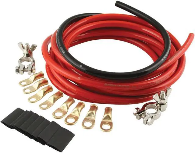 Battery Cable Kit2 GaugeTop Mount Battery TerminalsTerminals/Heat Shrink IncludedCopper15 ft Red/2 ft BlackKitThis QuickCar Battery Cable Kit comes with 2 Gauge Cable, Terminals and Power Rings. The best battery cable money can buy. Includes 15 feet of red wire, 2 feet of black wire, a pair of marine style battery terminals, and 8 gold plated power ring terminals with shrink tubing. Sold one complete kit. - Battery Cable Kit | 2 Gauge | Top Mount Battery Terminals - Battery Cable Kit 2 Gauge