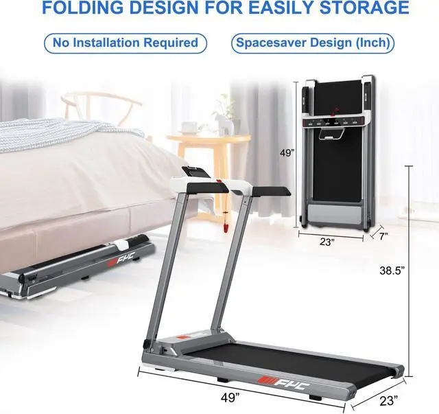 This treadmill does not require any screws when you install it, it will be very convenient that you just need to revolve the knob. This folding treadmill can be placed under the sofa, corner or bed, reducing the floor space and making it ideal for any room.