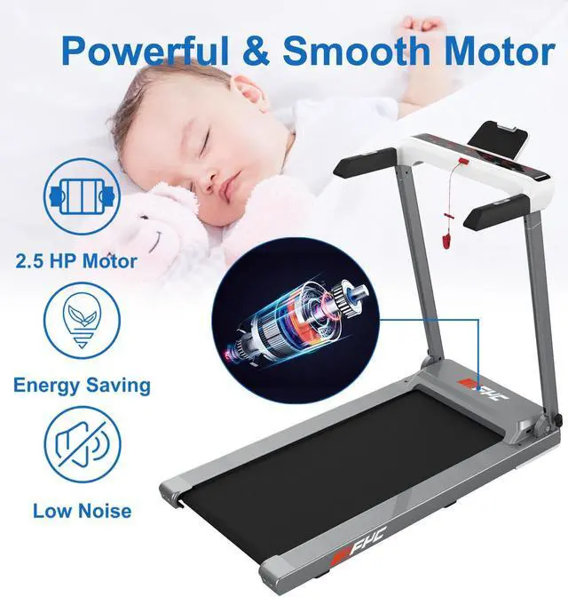 This treadmill with low noise motor is designed for home environment. When you use our treadmill, it's the same volume as the conversation, don't worry it will bother your family and neighbors. The 2.5HP motor ensures perfect performance for running, jogging or walking in the comfort of your home.