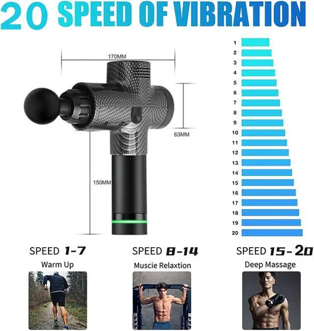 3.20 speed optional modes:Meet various needs - Fitness, physiotherapy, health care One button switching, you can choose the most suitable speed base for your body condition Simple and easy, meet more needs in different situations.
