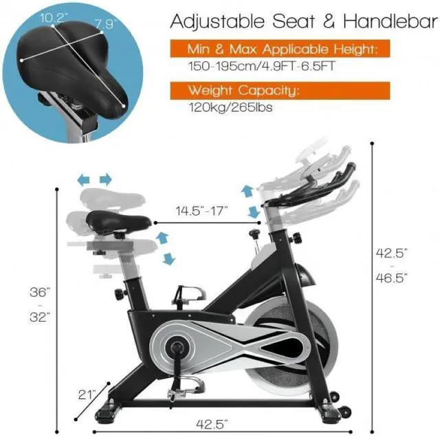 Easy Assembly and Convenient Movement: Clear installations and all necessary hardware are included, you can assemble the exercise bike step by step without effort. Moreover, 2 transport wheels on the bottom can help you move the indoor cycling bike from one place to another. Applicable user height: 4.9ft to 6.5ft.