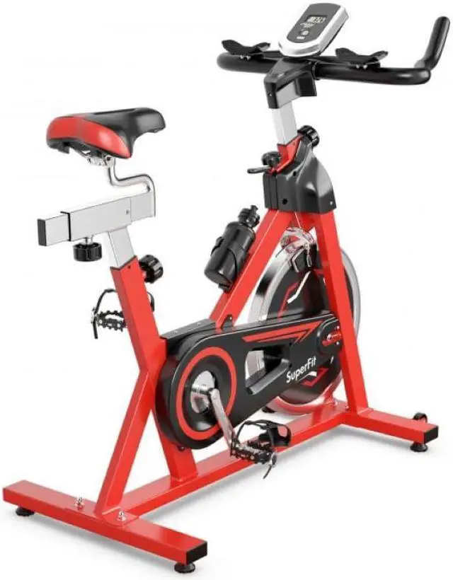 LCD Monitor and Water Kettle: The exercise bike is equipped with a multi-functional LCD monitor. The display shows time, speed, distance and calories in extra-large numbers for improved readability. Plus, we included water kettle with cup holder, which makes it convenient for users to drink water and keep great performance while training.