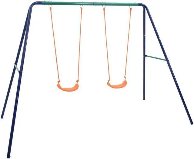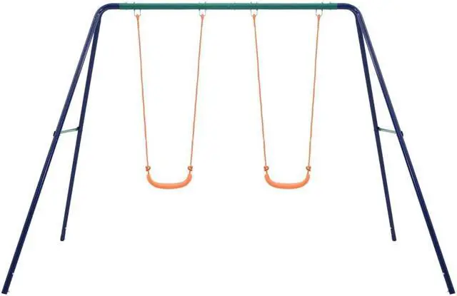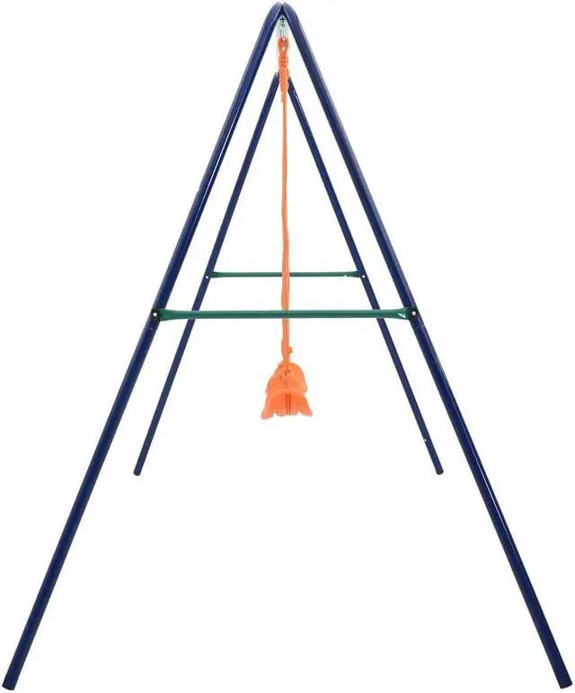 This swing set consists of a sturdy steel A-frame with 2 single swing seats. Thanks to its sturdy steel frame and plastic seats, the set is extremely durable and weather-resistant. It is also easy to assemble. All swings are securely fixed to the sturdy A-frame crossbar with sturdy brackets, bolts, hooks and ropes.